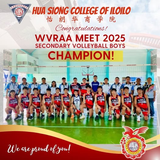 Congratulations to our Hua Siong College of Iloilo Secondary Volleyball Boys for emerging as Champions in the WVRAA Meet 2025 and securing their spot in the Palarong Pambansa!