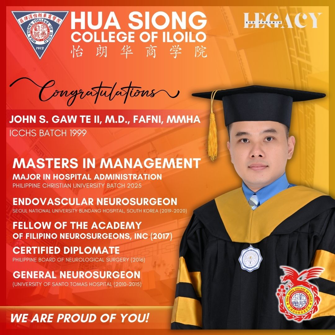 He is currently serving patients in Iloilo City and has recently earned his Master’s degree in Management, with a Major in Hospital Administration, from the Philippine Christian University (Batch 2025).