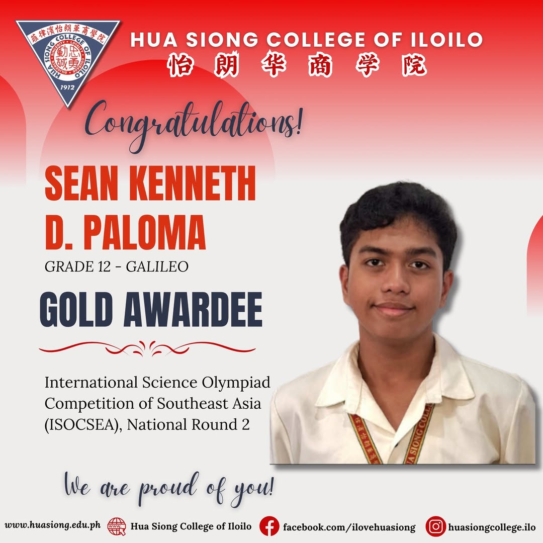 Congratulations, Sean Kenneth D. Paloma of Grade 12 Galileo, for winning the Gold Medal in the International Science Olympiad Competition of Southeast Asia (ISOCSEA) National Round 2!