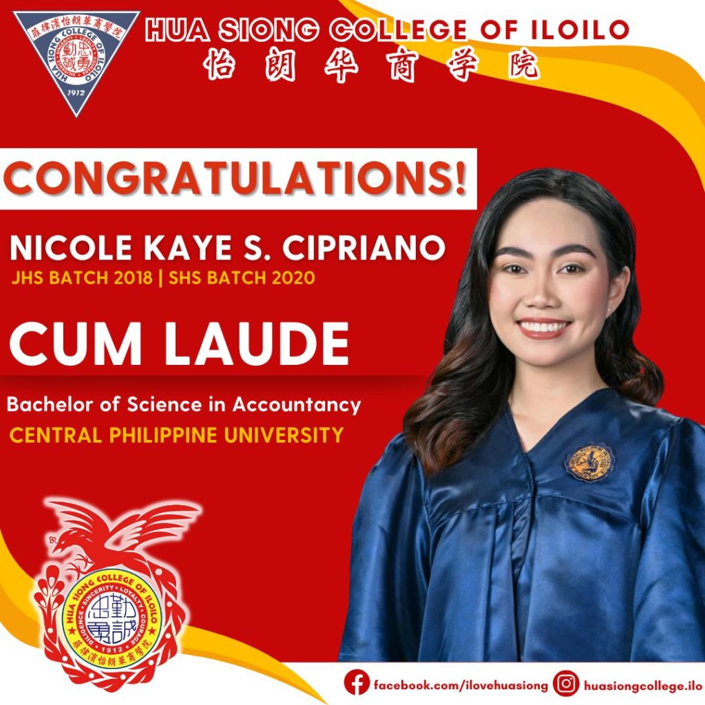 𝐍𝐢𝐜𝐨𝐥𝐞 𝐊𝐚𝐲𝐞 𝐒. 𝐂𝐢𝐩𝐫𝐢𝐚𝐧𝐨 JHS Batch 2018 | SHS Batch 2020 | Cum Laude, Bachelor of Science in Accountancy Central Philippine University