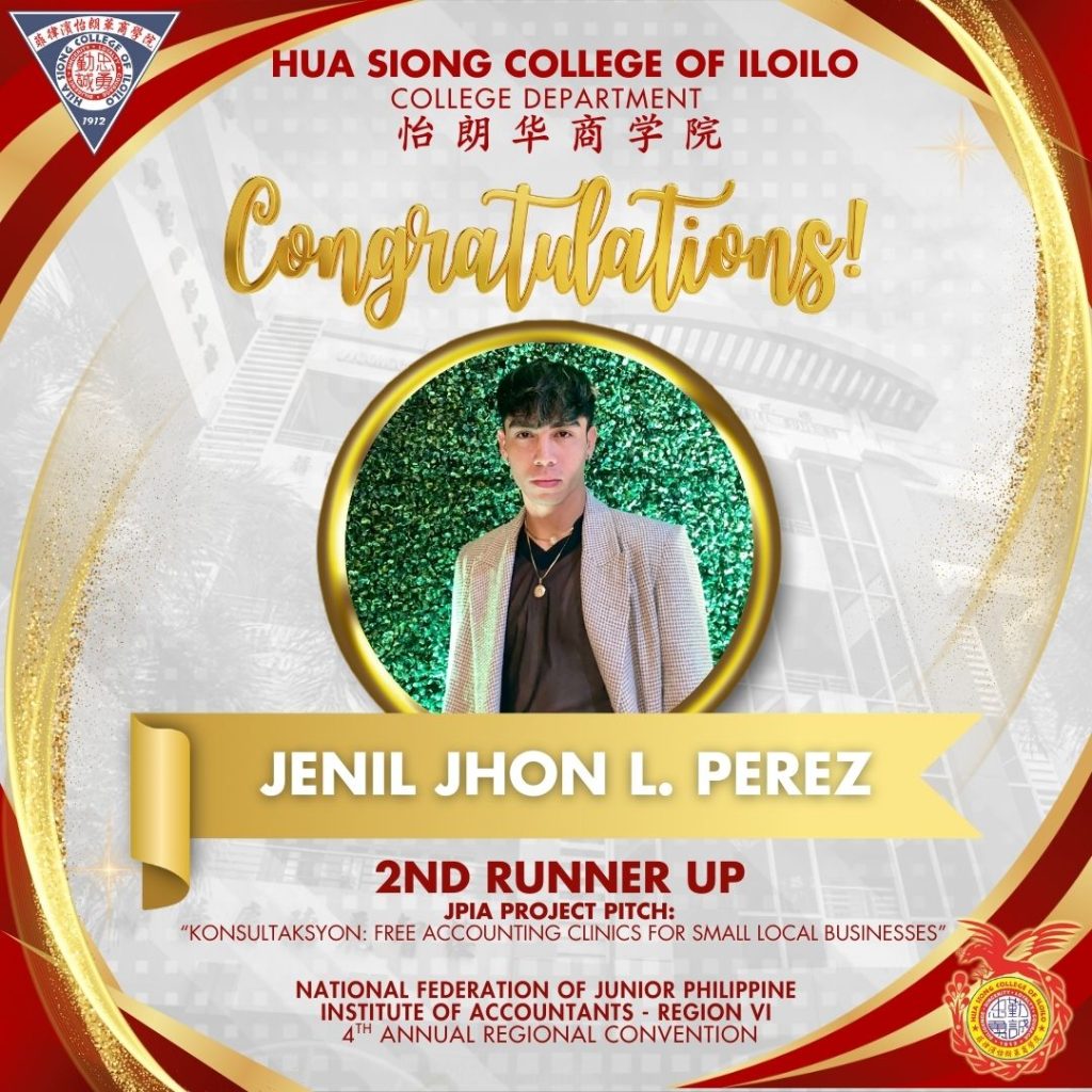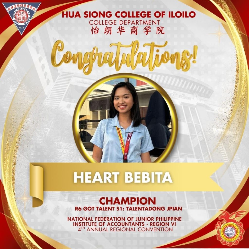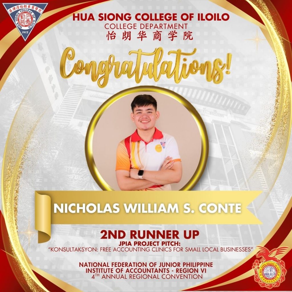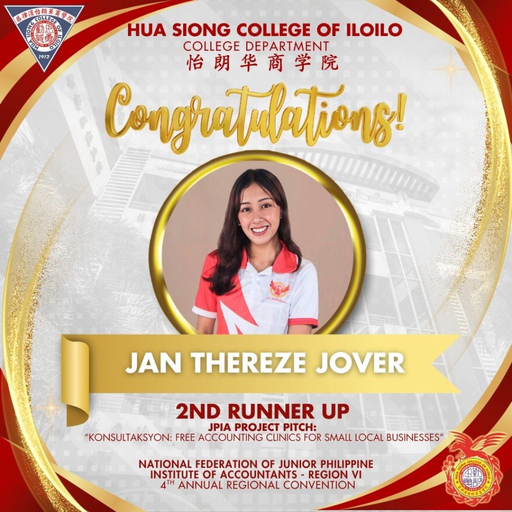 With utmost pride, Hua Siong College of Iloilo – JPIA celebrates its momentous achievement as Overall Champion at the 4th Annual Regional Convention of the National Federation of Junior Philippine Institute of Accountants โ Region VI.