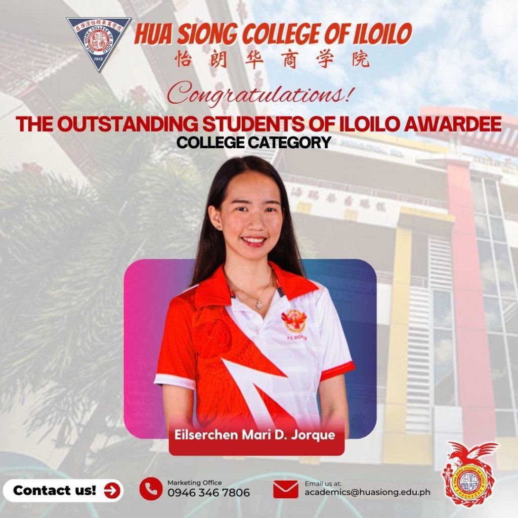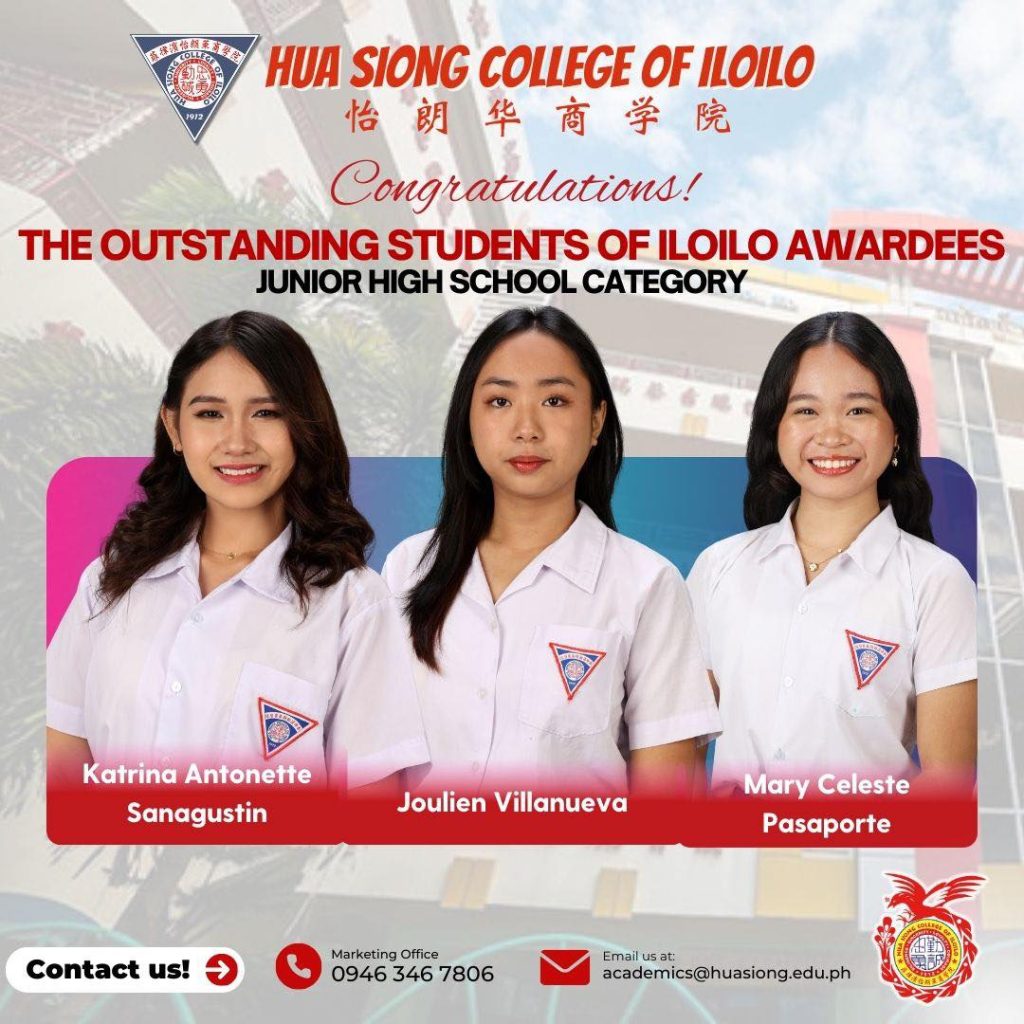 Hua Siong College of Iloilo proudly congratulates ๐๐๐ญ๐ซ๐ข๐ง๐ ๐๐ง๐ญ๐จ๐ง๐๐ญ๐ญ๐ ๐๐๐ง๐๐ ๐ฎ๐ฌ๐ญ๐ข๐ง, ๐๐จ๐ฎ๐ฅ๐ข๐๐ง ๐๐ข๐ฅ๐ฅ๐๐ง๐ฎ๐๐ฏ๐, ๐๐๐ซ๐ฒ ๐๐๐ฅ๐๐ฌ๐ญ๐ ๐๐๐ฌ๐๐ฉ๐จ๐ซ๐ญ๐ ๐๐ง๐ ๐๐ข๐ฅ๐ฌ๐๐ซ๐๐ก๐๐ง ๐๐๐ซ๐ข ๐. ๐๐จ๐ซ๐ช๐ฎ๐ for being the Finalists of this year’s ๐ง๐ต๐ฒ ๐ข๐๐๐๐๐ฎ๐ป๐ฑ๐ถ๐ป๐ด ๐ฆ๐๐๐ฑ๐ฒ๐ป๐๐ ๐ผ๐ณ ๐๐น๐ผ๐ถ๐น๐ผ ๐๐๐ฎ๐ฟ๐ฑ๐ (๐ง๐ข๐ฆ๐๐).