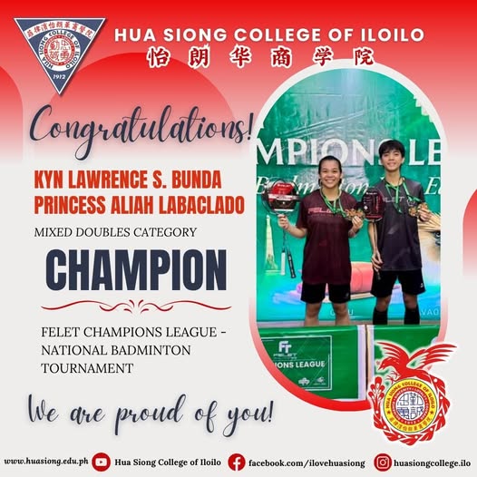 Congratulations to ๐๐๐ป ๐๐ฎ๐๐ฟ๐ฒ๐ป๐ฐ๐ฒ ๐ฆ. ๐๐๐ป๐ฑ๐ฎ (๐ญ๐ฎ-๐๐ฎ๐น๐ถ๐น๐ฒ๐ผ) and ๐ฃ๐ฟ๐ถ๐ป๐ฐ๐ฒ๐๐ ๐๐น๐ถ๐ฎ๐ต ๐๐ฎ๐ฏ๐ฎ๐ฐ๐น๐ฎ๐ฑ๐ผ (๐ญ๐ญ-๐๐๐ฐ๐น๐ถ๐ฑ) for emerging as ๐๐ต๐ฎ๐บ๐ฝ๐ถ๐ผ๐ป๐ ๐ถ๐ป ๐๐ต๐ฒ ๐ ๐ถ๐ ๐ฒ๐ฑ ๐๐ผ๐๐ฏ๐น๐ฒ๐ ๐ฐ๐ฎ๐๐ฒ๐ด๐ผ๐ฟ๐ ๐ฎ๐ ๐๐ต๐ฒ ๐๐ฒ๐น๐ฒ๐ ๐๐ต๐ฎ๐บ๐ฝ๐ถ๐ผ๐ป๐ ๐๐ฒ๐ฎ๐ด๐๐ฒ โ ๐ก๐ฎ๐๐ถ๐ผ๐ป๐ฎ๐น ๐๐ฎ๐ฑ๐บ๐ถ๐ป๐๐ผ๐ป ๐ง๐ผ๐๐ฟ๐ป๐ฎ๐บ๐ฒ๐ป๐, held at the Iloilo Tigers Badminton Center on July...