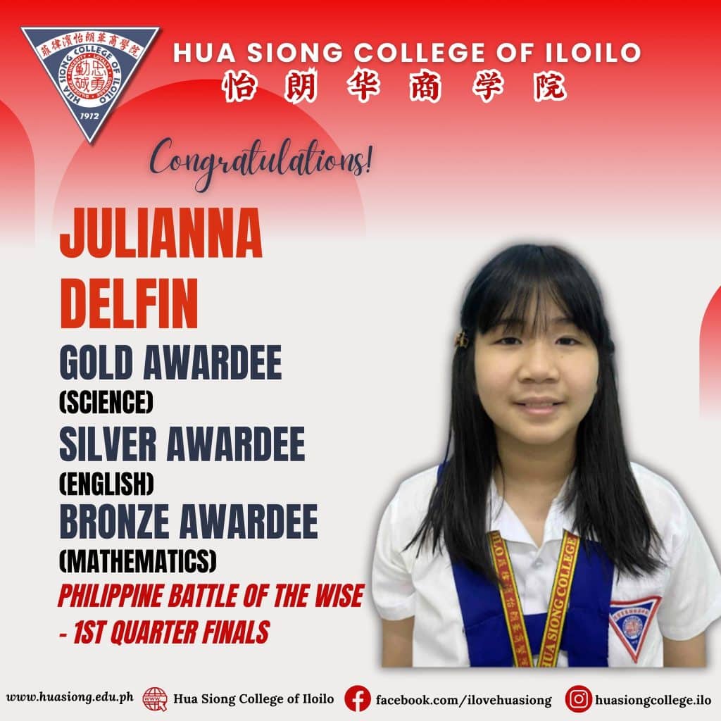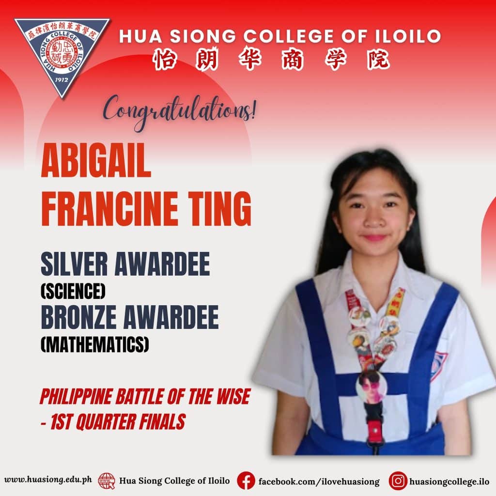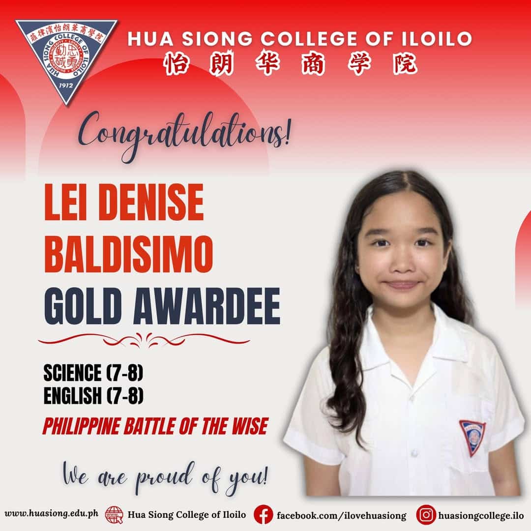 Once again, Hua Siong College of Iloilo hones champion learners. Hua Siong is proud of you!